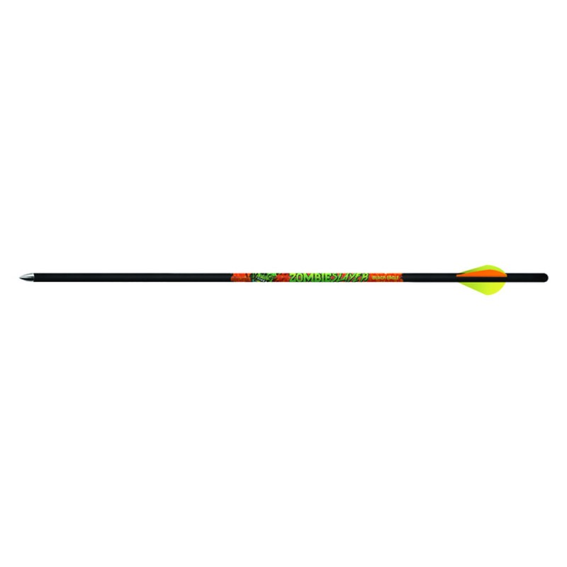 • 6 bełtów z zamontowanymi lotkami 2" Blazer Vanes w kolorach fluorescencyjnej żółci i pomarańczy (18 granów / 1,17 g każda)