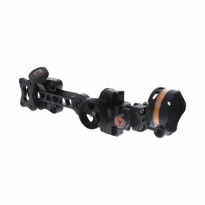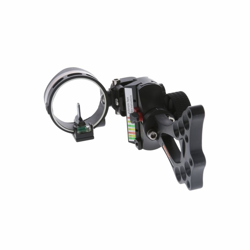 Celownik wyposażony jest w podświetlaną poziomicę oraz umożliwia regulację w 2. i 3. osi, co zapewnia lepszą kontrolę nad pozycją łuku i zwiększa dokładność strzałów, zwłaszcza na nierównym terenie. W zestawie znajduje się 120 fabrycznie oznaczonych taśm z podziałką.