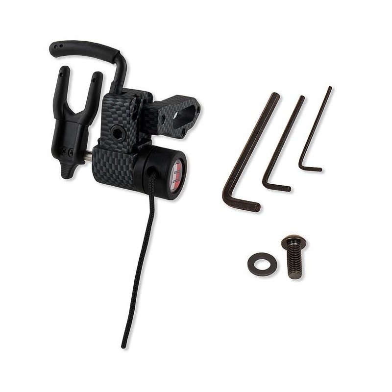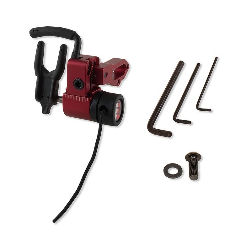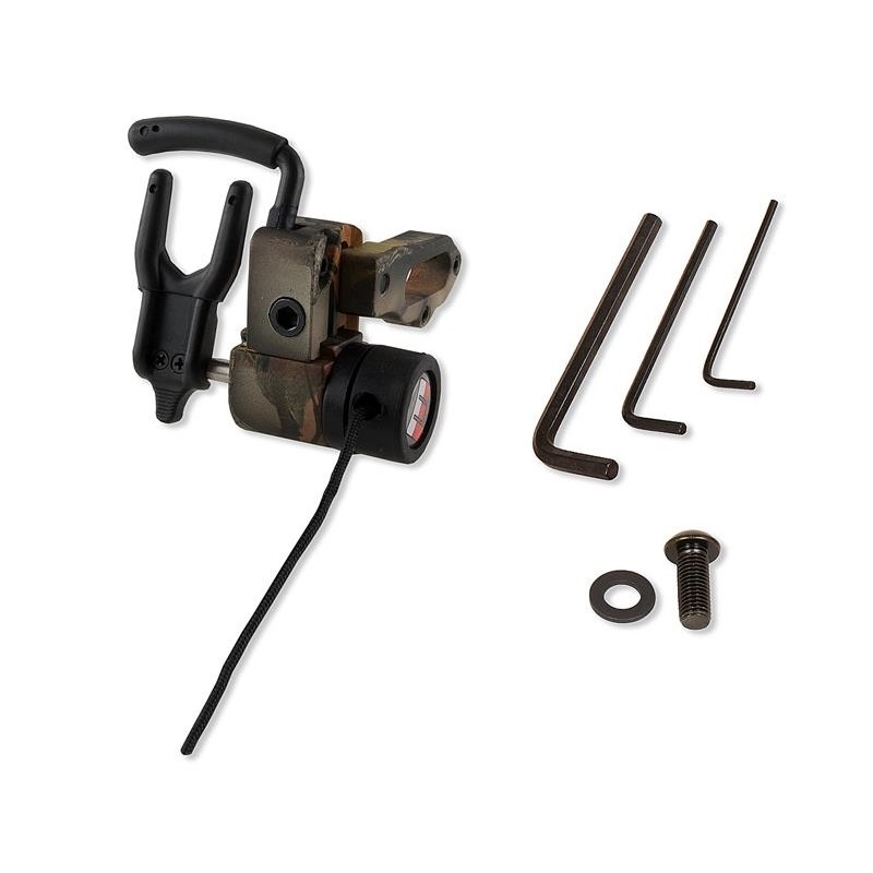 Ekonomiczna podstawka opadająca do łuków bloczkowych typu full-containment, wzorowana na modelach firmy QAD, posiadająca poprzeczkę uniemożliwiającą wypadnięcie strzały przy naciąganiu łuku.