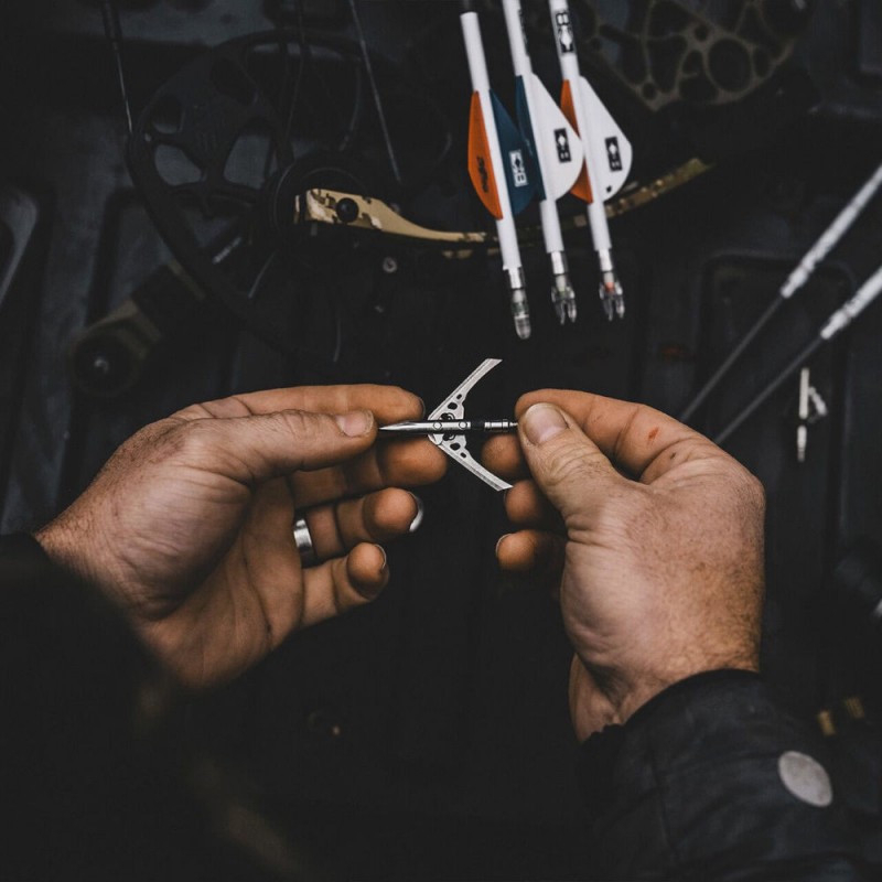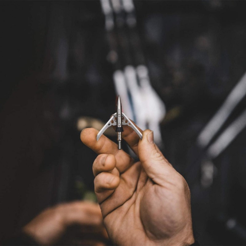 • Po otwarciu, ostrza zadają cięcie o średnicy 2" (ponad 5 cm), co zapewnia szybkie i humanitarne pozyskanie zwierzyny.