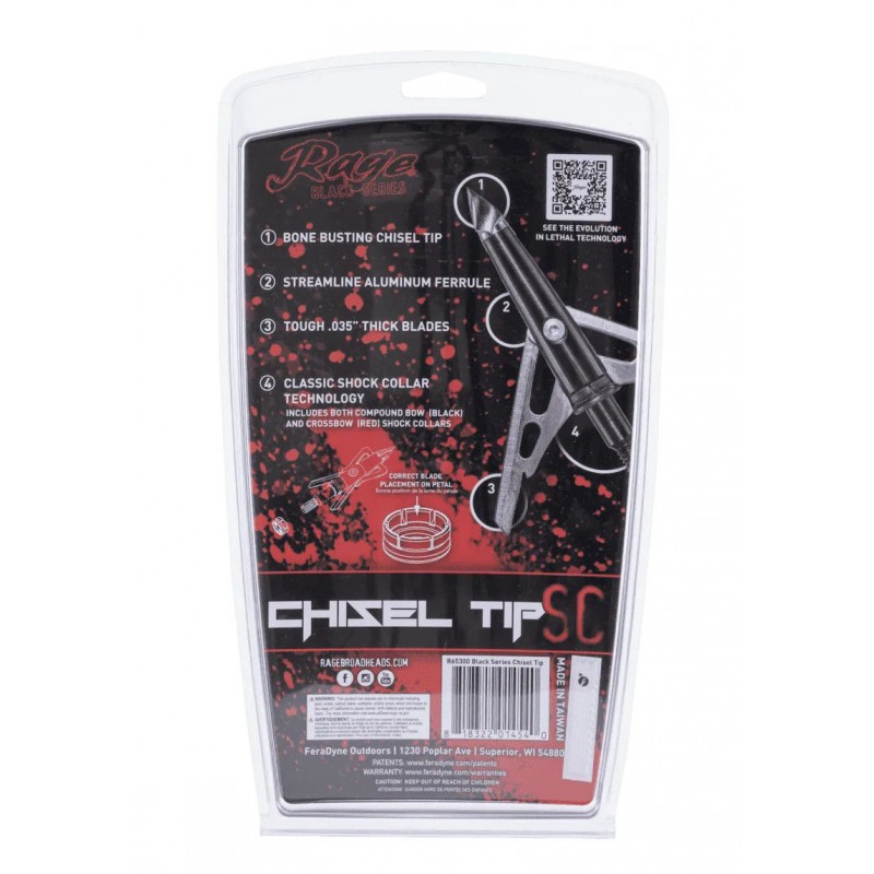 Groty myśliwskie mechaniczne Rage Black Series Chisel – 2 ostrza (3 szt.)