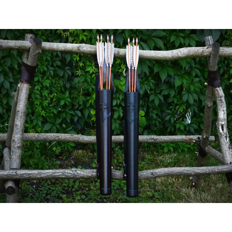 Składa się z połączonych ze sobą warstw skóry, co pozwala na zachowanie sztywności oraz zapobiega odkształcaniu się kołczanu.