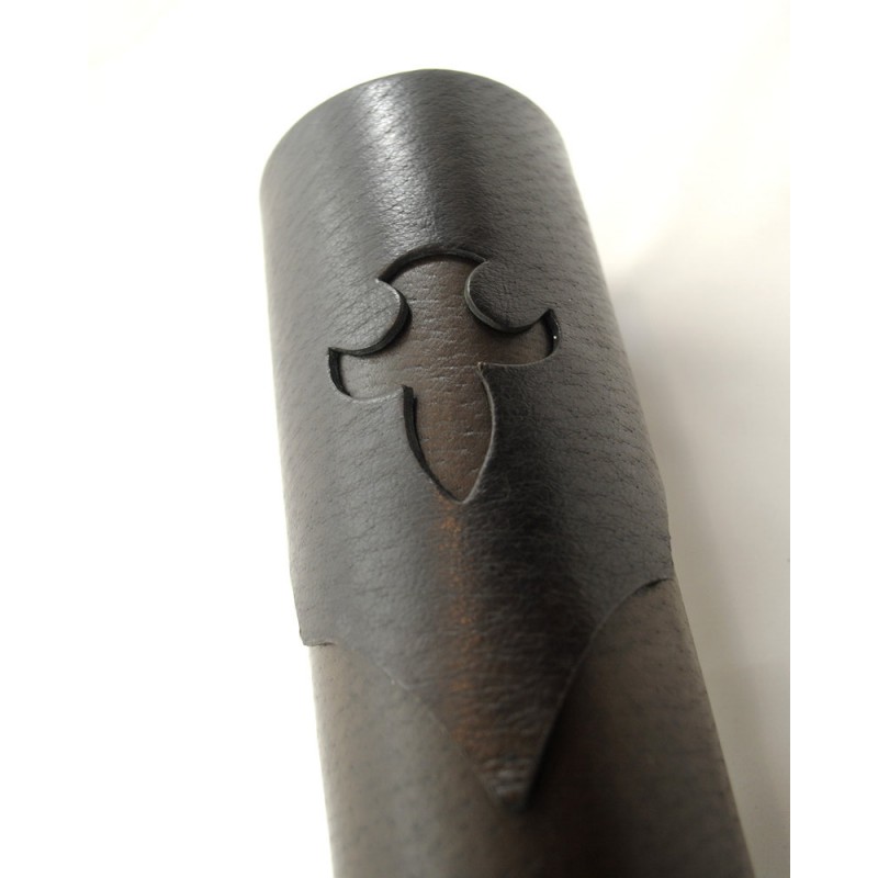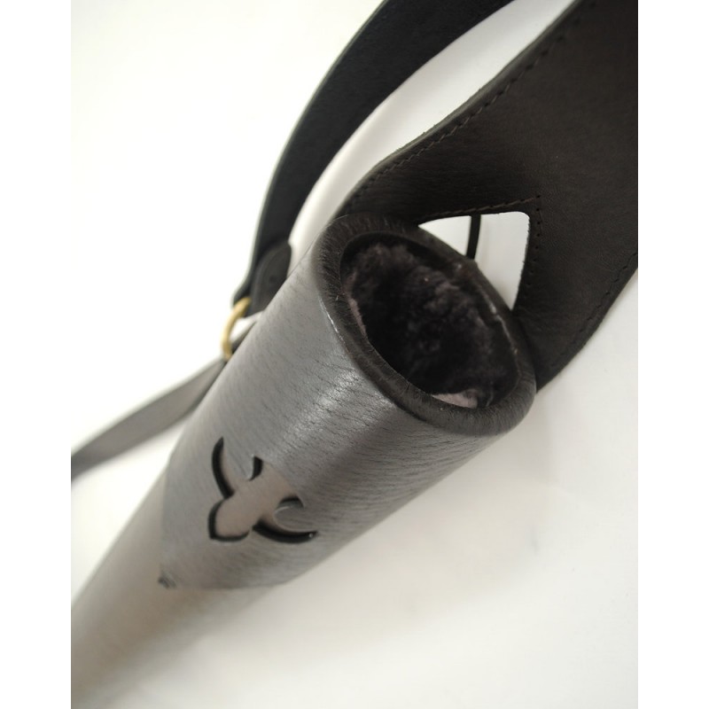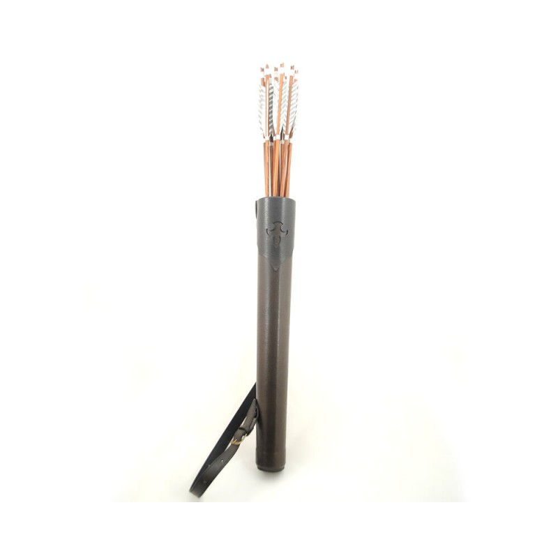 Kołczan w kształcie tuby wykonany z naturalnej skóry.