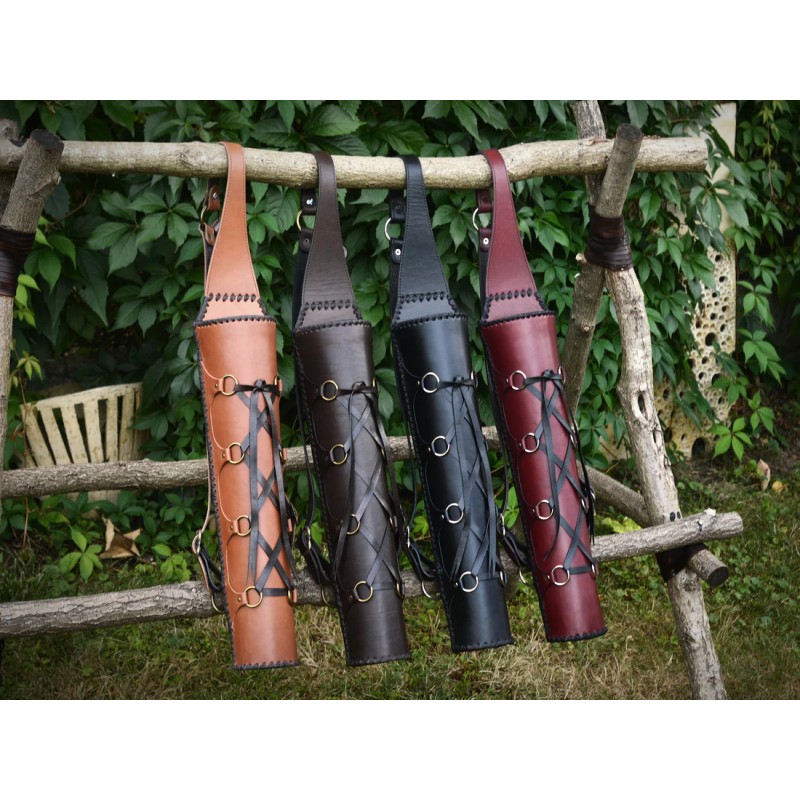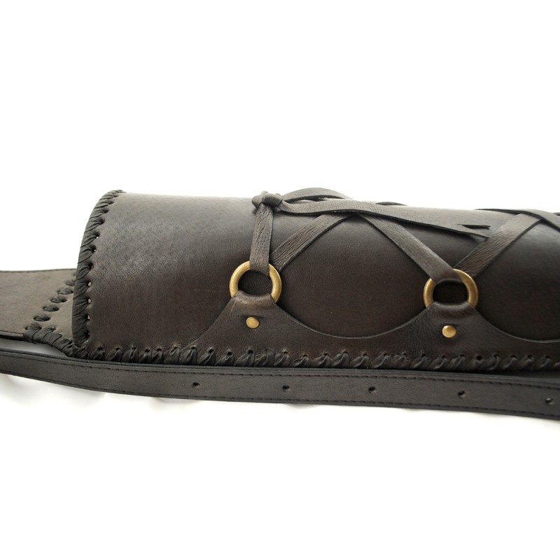 Front kołczanu w tym modelu jest zdobiony pierścieniami z przewiązanym przez nie szerokim rzemieniem.