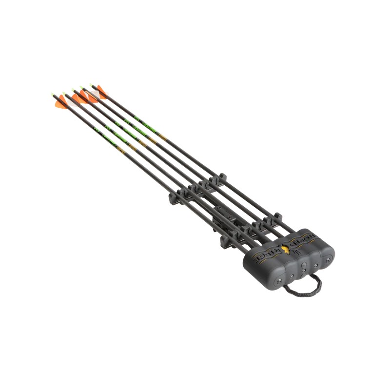 Kołczan został zaprojektowany z wykorzystaniem wytrzymałego i lekkiego materiału Ballistix CoPolymer®, który jest o 25% lżejszy od aluminium, lecz cechuje się tym samym poziomem trwałości, a jednocześnie jest przyjemny w dotyku. Trzy jasne, zielone diody LED umieszczone na górze umożliwiają bezpieczne poruszanie się w ciemności i szybkie przygotowanie do strzału w każdych warunkach oświetleniowych. Z kolei pleciona lina do zawieszania kołczanu na drzewie dodaje praktyczności, pozwalając na wygodny dostęp do strzał w każdej sytuacji.