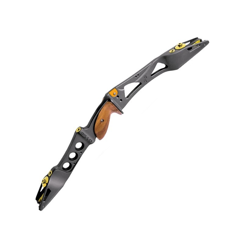 • W dolnej sekcji majdanu wydzielono specjalne, okrągłe otwory pod montaż dedykowanych ciężarków Gillo, co pozwala na idealne dociążenie dolnej części łuku dla potrzeb strzelectwa Barebow.
