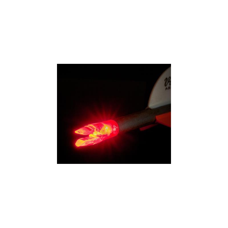 Nasadki wyposażone są w jasne diody LED oraz wydajne baterie litowe, które gwarantują ok. 20 godzin nieprzerwanego świecenia. Zapewnia to ogromny margines bezpieczeństwa – strzałę można z łatwością odnaleźć w terenie nawet następnego dnia.