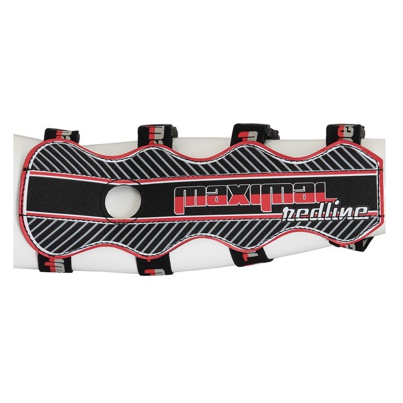 Ochraniacz w kolorze czarnym, z czerwonymi akcentami oraz grafiką przedstawiającą logo producenta.