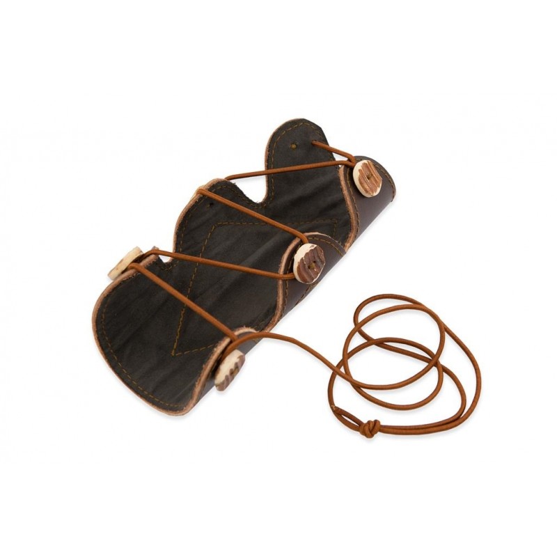 Tradycyjny ochraniacz przedramienia wykonany ze skóry naturalnej, zapinany na linkę bungee. Dla wygody użytkowania od strony wewnętrznej ochraniacz został wścielony zamszem.