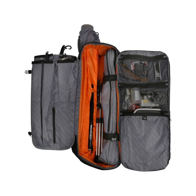 We wnętrzu plecaka znajdziemy osobne kieszenie na celownik, stabilizator, strzały, majdan, ramiona, narzędzia łucznicze jak i inne akcesoria. Dodatkowo na zewnątrz plecaka znajdziemy dodatkowe kieszenie wykonane z siatki, które pomogą nam w transportowaniu np. butelki z wodą czy też statywu.