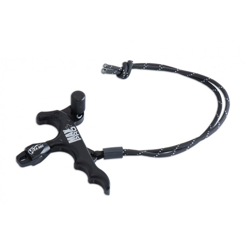 Max Pro+ wyposażony jest w dwustronną szczękę (Caliper). Mechanizm działa w bardzo intuicyjny sposób: wciśnięcie dźwigni spustu otwiera szczęki, a jej zwolnienie powoduje ich ciche i automatyczne zamknięcie na pętelce D-loop. Taka konstrukcja zapewnia równomierne zwolnienie cięciwy, co przekłada się na mniejszy moment obrotowy i większą celność. Spust oferuje regulację czułości języka spustu za pomocą śruby. Radełkowany kołek pod kciuk jest zamocowany bezpośrednio do języka spustowego i posiada możliwość obrotu w zakresie 45°. Wbudowana smycz na nadgarstek zabezpiecza spust przed zgubieniem. Max Pro+ posiada uchwyt na 4 palce