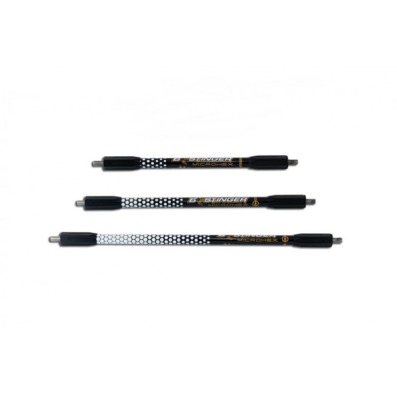 Najważniejszym elementem wyróżniającym Microhex jest opatentowana technologia Countervail® – specjalny materiał zintegrowany bezpośrednio ze strukturą włókna węglowego na całej długości stabilizatora. W odróżnieniu od tradycyjnych systemów, które jedynie tłumią wibracje na końcach, Countervail® aktywnie je pochłania u samego źródła. Zapewnia to o 40% skuteczniejszą redukcję drgań, co przekłada się na szybsze wygaszenie energii, mniejszy odrzut po strzale i cichszą pracę łuku, bez potrzeby dodawania ciężkich gumowych damperów.