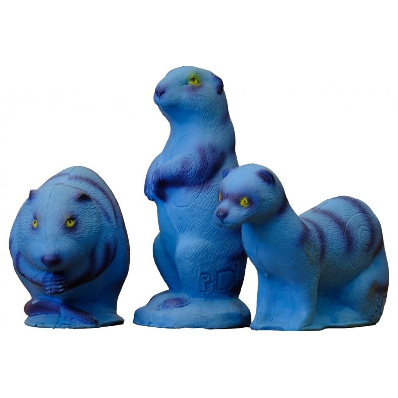 Zestaw 3 figur firmy 3DI zawierający cele przedstawiające pieska preriowego, piżmaka oraz norkę z serii Pandora (w kolorze niebieskim). Cele te wykonane są z wytrzymałej pianki która cechuje się samozasklepianiem oraz łatwością wyciągania strzał. Każda z figur posiada cztery strefy punktowe co umożliwia ich dłuższe użytkowanie.