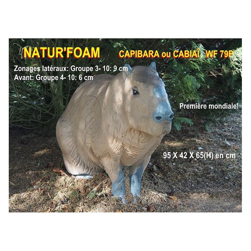 Wysokiej jakości cel łuczniczy 3D francuskiej firmy NATUR FOAM o realistycznie odwzorowanym wyglądzie kapibary. Wykonany z wytrzymałej, zasklepiającej się pianki. Cechuje się łatwością wyjmowania strzał.