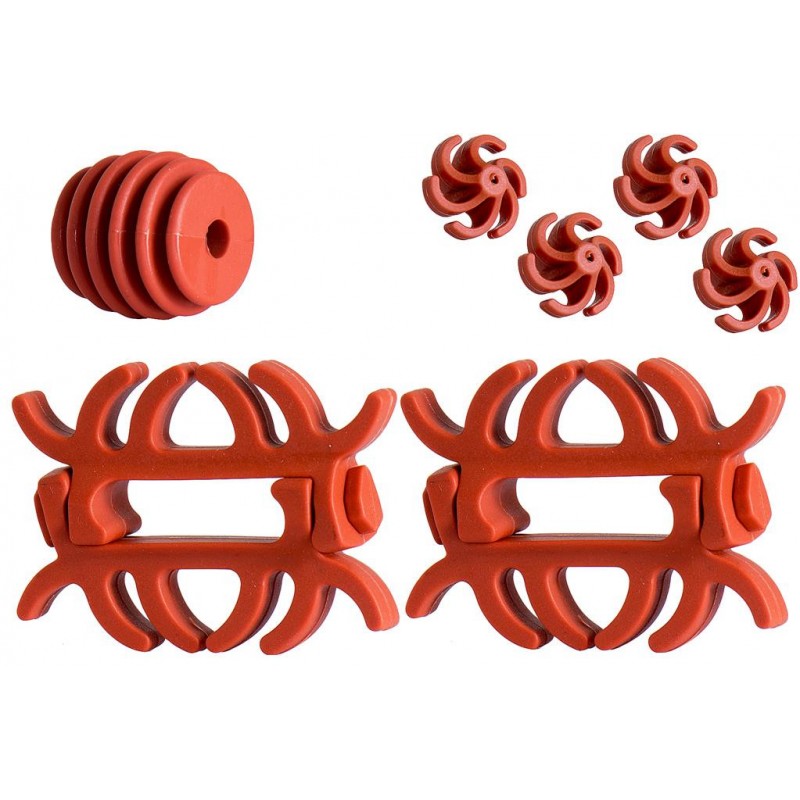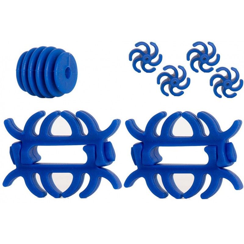 Zestaw tłumików do łuków bloczkowych. W zestawie znajdują się tłumiki na ramiona (para), dwie pary tłumików na cięciwy, oraz tłumik na odbojnik cięciwy.