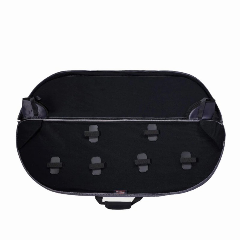 Torba została wykonana z wytrzymałego nylonu, z podwójnym szwem i wzmocnionymi krawędziami, co zapewnia doskonałą ochronę przed uszkodzeniami mechanicznymi, kurzem i wilgocią. Wnętrze wyłożono grubą pianką oraz miękką podszewką z trykotu, która zabezpiecza łuki przed zarysowaniami. Sześć regulowanych pasków na rzepy utrzymuje sprzęt w stabilnej pozycji podczas transportu.