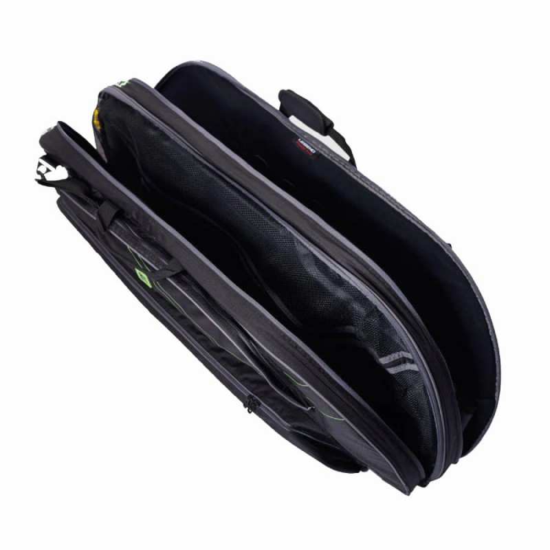 Model Double2 44 oferuje dwie obszerne komory mieszczące dwa łuki bloczkowe oraz dodatkowe kieszenie na drobne akcesoria. Dla zwiększenia komfortu użytkowania torba została wyposażona w regulowany, wyściełany pasek na ramię oraz uchwyty z neoprenowym wykończeniem. Metalowe klamry i nity, plastikowe nóżki oraz solidne suwaki zapewniają trwałość i niezawodność nawet przy intensywnym użytkowaniu.